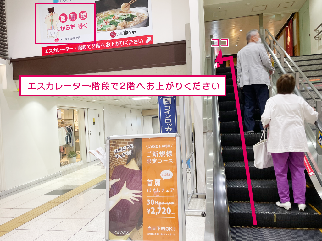 3.エスカレーターまたは階段で2階へ進む