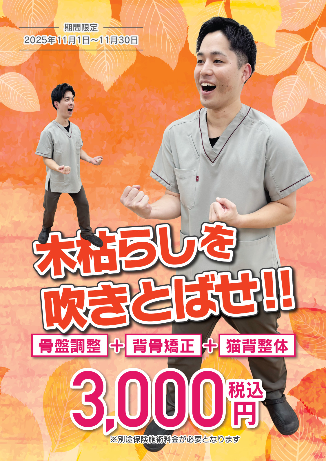 3,000円(税込)+保険施術料金