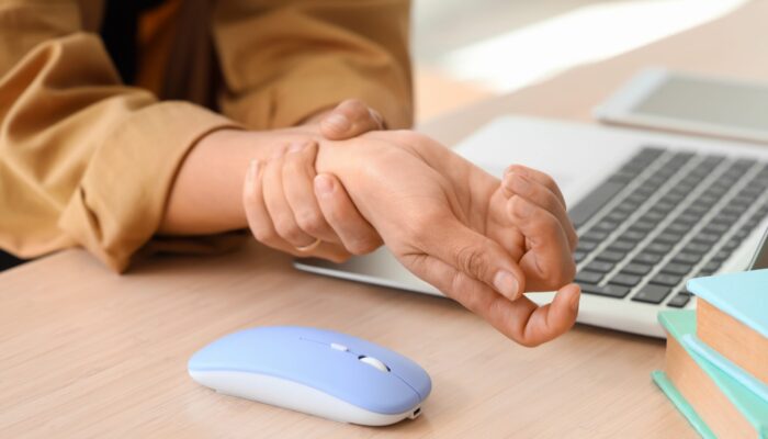 パソコンの長時間のマウス操作やタイピングが原因で、手首や指に痛みが生じる腱鞘炎を「パソコン腱鞘炎」とよばれています。
